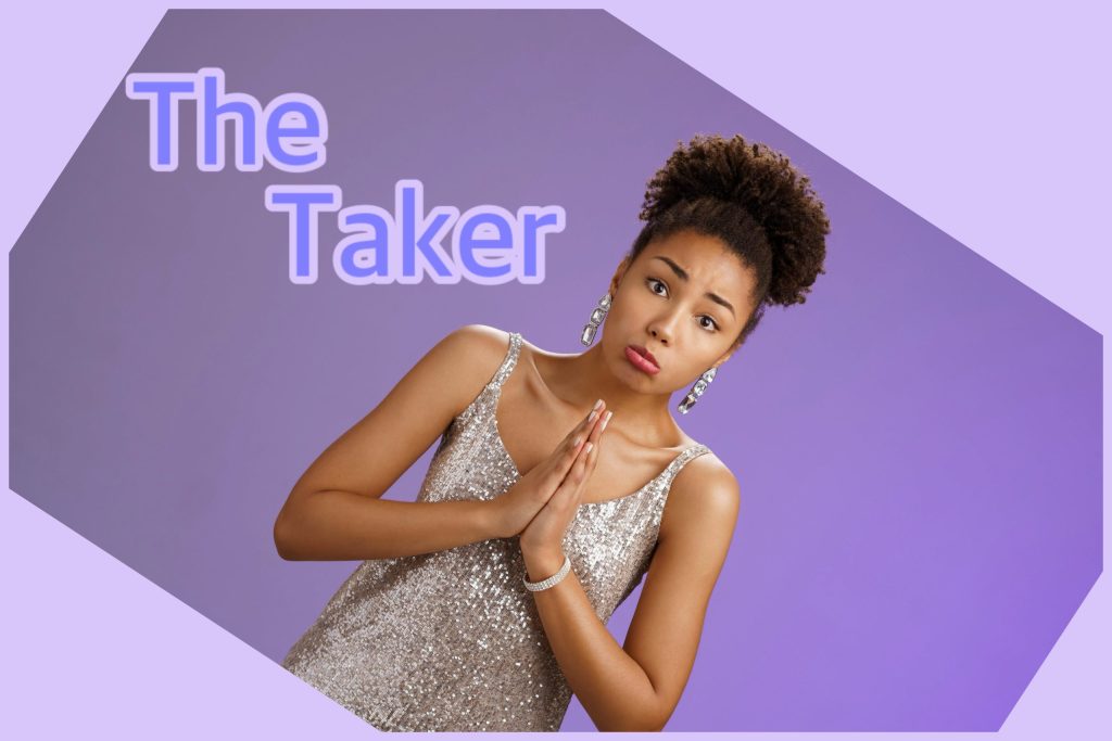 It is pretentious to praise someone with the ulterior motive of getting praised in return. Taking always makes for complicated compliments. Need help identifying The Taker? She’s the kind of gal who says things like…