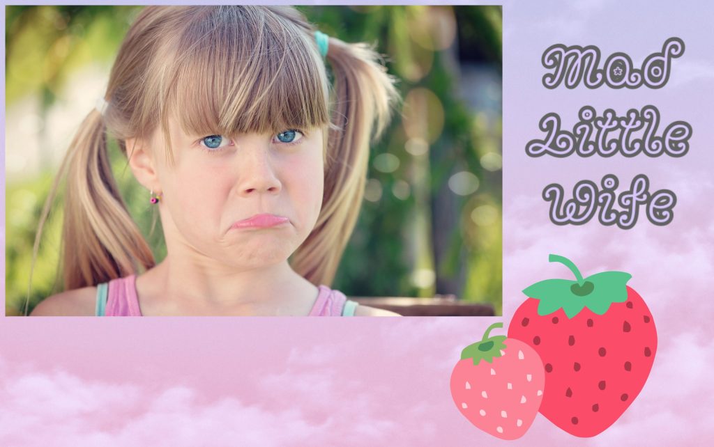 While last month’s article focused on enchanting our husbands with a smile (i.e. wonder & whimsy), this month’s article will focus on enchanting our husbands with a frown (i.e. madness & sadness). Sounds a little counterintuitive, doesn’t it? But it really works…if you go about it the right way! (The trick is to lean into childlikeness, not childishness. Remember: it’s all about emulating those positive features of children, rather than the negative features.) Next time you feel angry, let yourself be a…